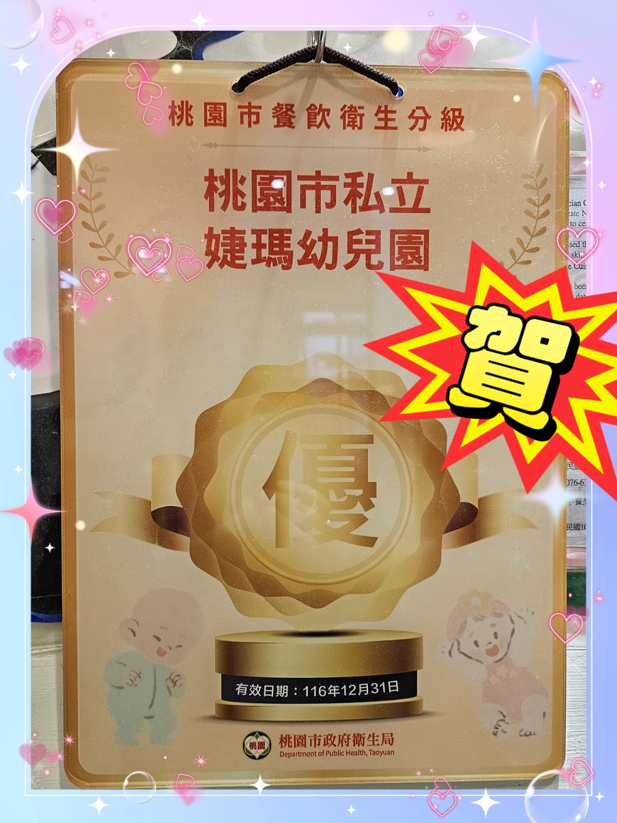 賀!婕瑪幼兒園榮獲桃園市衛生分級優等獎
