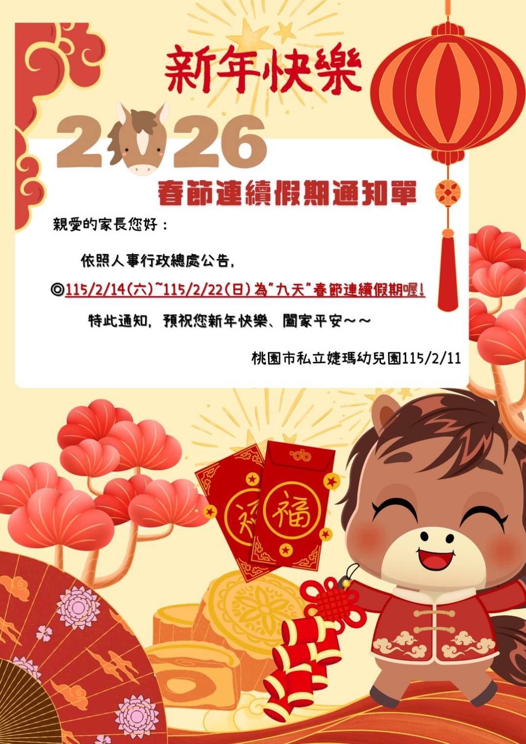 2026春節連續假期通知單